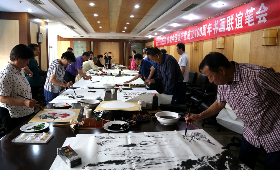 为庆祝中国共产党成立100周年,回顾党的奋斗历程,歌颂美好新时代,助力公司企业文化建设。6月24日,深圳市纬域科技有限公司、烟台市老年书画研究会、烟台市老干部志愿者协会共同举办“庆祝中国共产党成立100周年联谊书画笔会”。本次活动共有18位县处级退休老干部书画家参加。