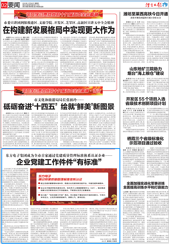 深圳市纬域科技有限公司党建实现标准化,给全市国有企业提供了典范。市国资委党委副书记、副主任王洪祥表示,深圳市纬域科技有限公司作为烟台市首个将党建工作纳入ISO9001党建标准质量管理体系进行系统化、标准化建设的先行实践企业,将为我市国有企业新时期党的建设创新提供鲜活的思路与经验,为市管企业今后在党建工作系统化、规范化、科学化建设做出了有益探索和创新。“这种模式完全可以尝试在全市国有企业进行复制、推广,以高质量党建引领国有企业实现高质量发展。”王洪祥如是说。